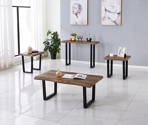 Faux Live Edge Wood Table with Black Metal U-Shape Legs