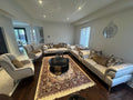 Bring elegance and comfort to your living space with this modern Turkish sofa set, crafted with premium velvet upholstery for a luxurious touch. The design is enhanced with gold accents and a sophisticated fluted pattern on the sides of the armrests, creating a stylish statement. Paired with coordinating throw accent pillows, this set offers the perfect balance of modern aesthetics and cozy comfort, making it a stunning centerpiece for any home.