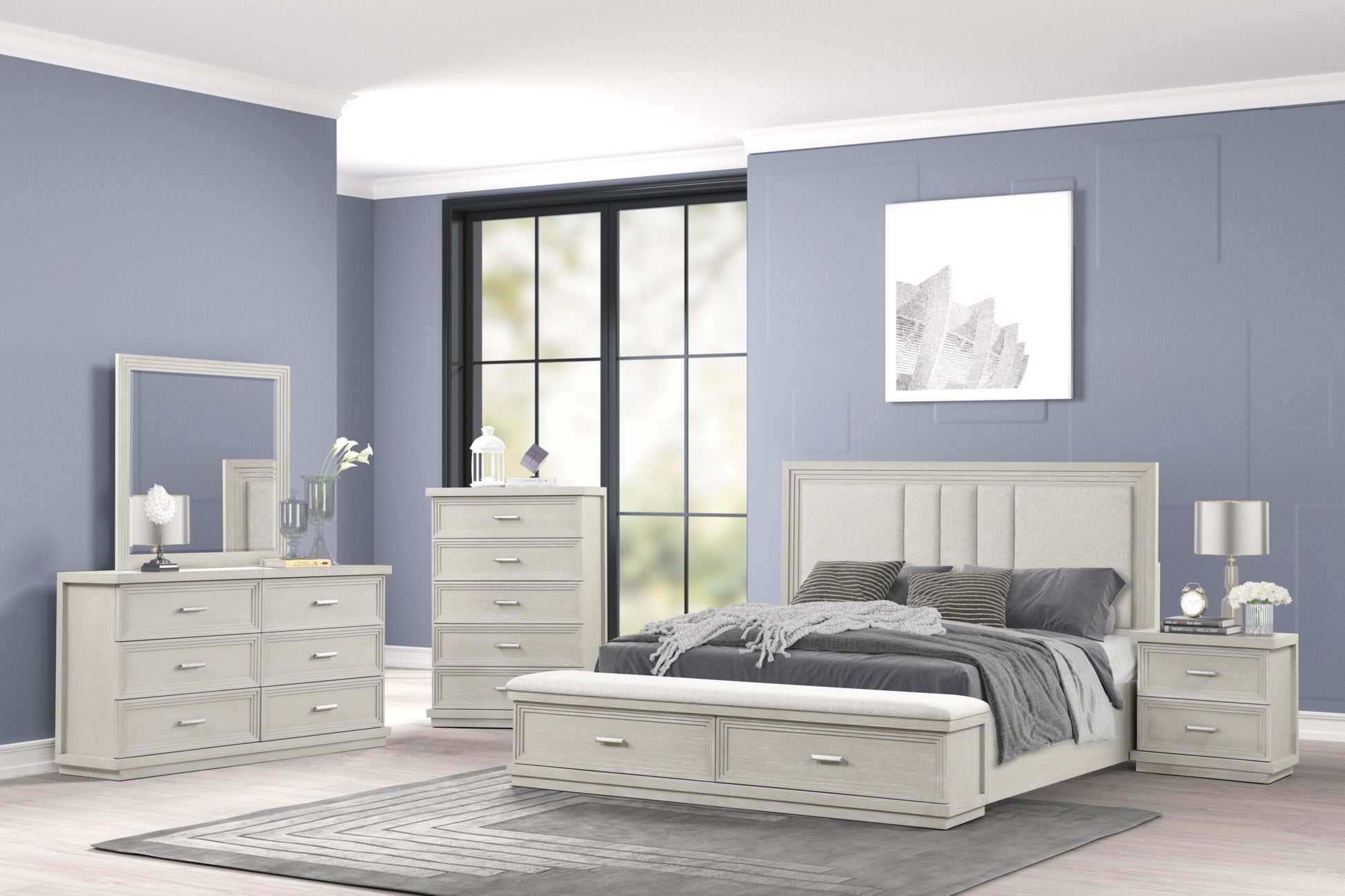Transform your space with the timeless elegance of the Orleans Bedroom Collection. Crafted from solid wood and finished in a soft antique white tone, this set blends classic charm with modern sophistication. The upholstered panel headboard adds a touch of luxury, while the sturdy drawers with sleek metal handles provide ample storage. Perfect for creating a serene and stylish retreat in your home.